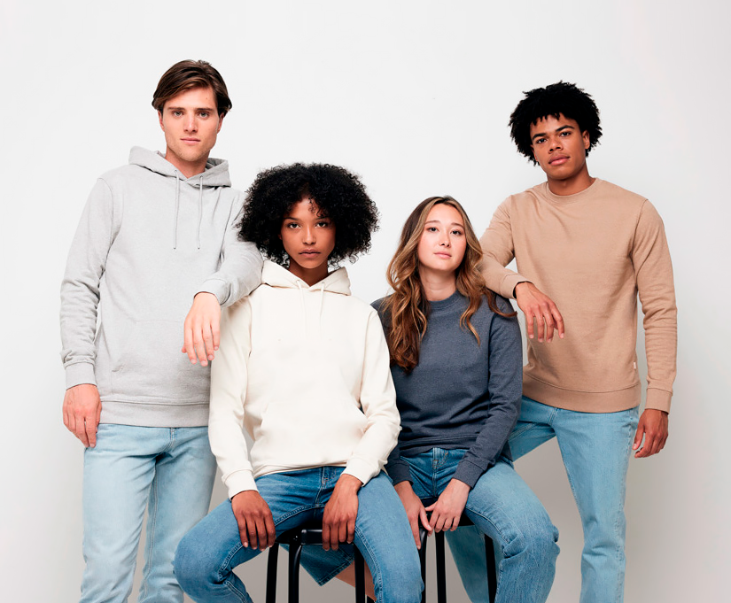 Ropa fabricada con materiales reciclados para minimizar la huella medioambiental.