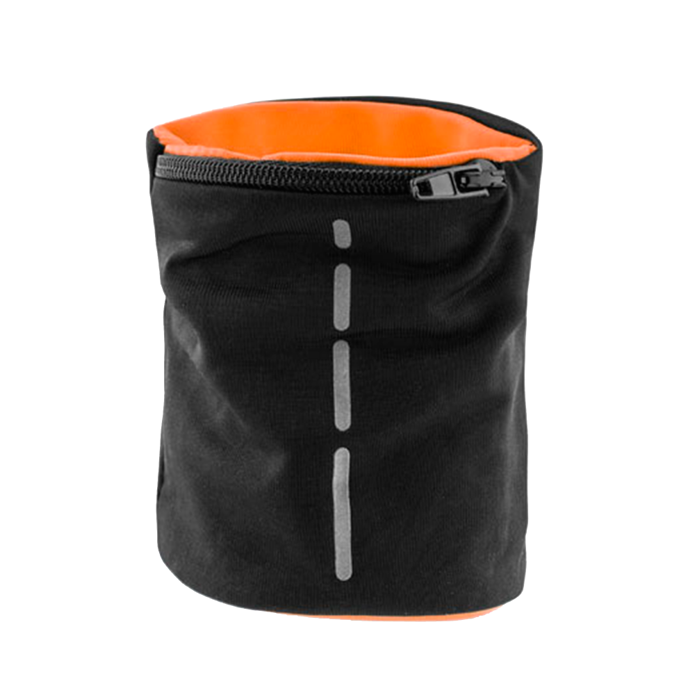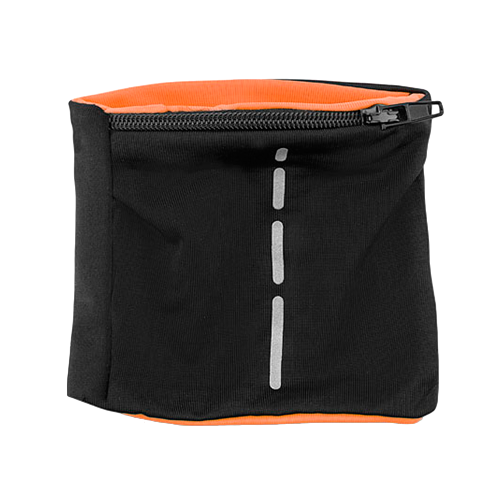 Muñequera de lycra con rayas reflectantes y bolsillo con cremallera integrado.