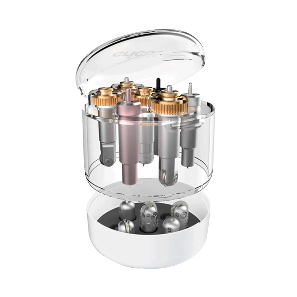 Con el organizador de herramientas de cricut podrás tener a mano todas tus cuchillas y así trabajar con mas efectividad. Gracias a su diseño transparente puedes ver rápidamente lo que tienes guardado en su interior