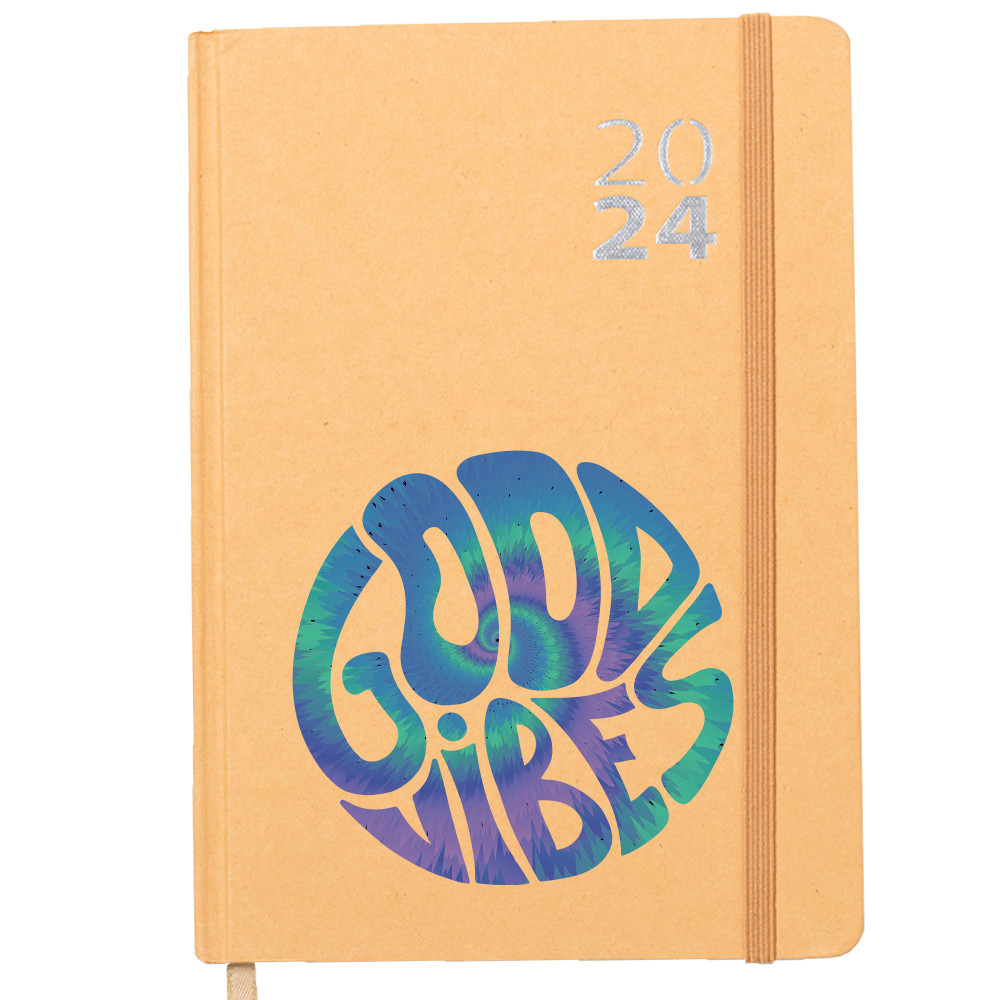 Agenda de tamaño A5 en cartón reciclado con diseño.