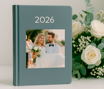 No dejes ningún detalle al azar. Personaliza esta agenda con tu foto de boda.