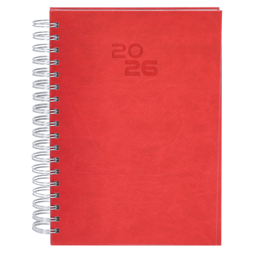 Agenda de anillas 2026 de polipiel suave con relieve del año realizado en láser.