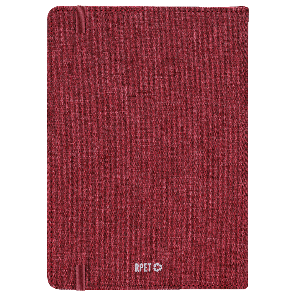 Agenda de tamaño A5 de cubiertas rígidas, fabricada en suave poliéster RPET.