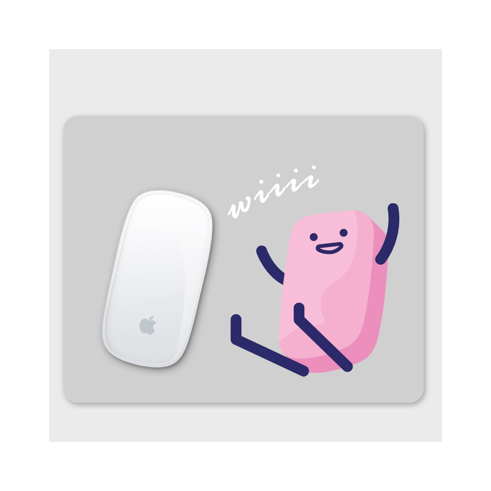 - Alfombrilla de ratón con base de goma y capa de poliester blanco.