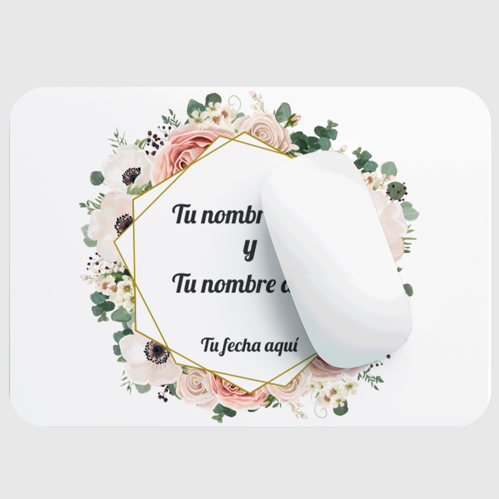 Esta alfombrilla la puedes personalizar con los nombres y la fecha de la boda. Indícanos en los comentarios los nombres y/o fecha que quieras que imprimamos. Si no nos indicas nada, imprimiremos solo la ilustración.