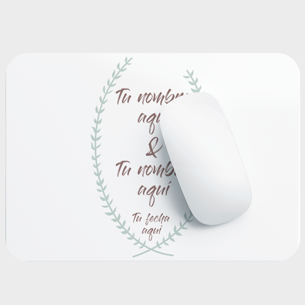 Esta alfombrilla la puedes personalizar con los nombres y la fecha de la boda. Indícanos en los comentarios los nombres y/o fecha que quieras que imprimamos. Si no nos indicas nada, imprimiremos solo la ilustración.