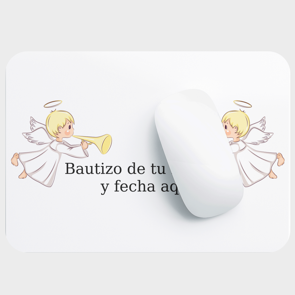 Esta alfombrilla la puedes personalizar con el nombre y la fecha del bautizo. Indícanos en los comentarios el nombre y/o fecha que quieras que imprimamos. Si no nos indicas nada, imprimiremos solo la ilustración.