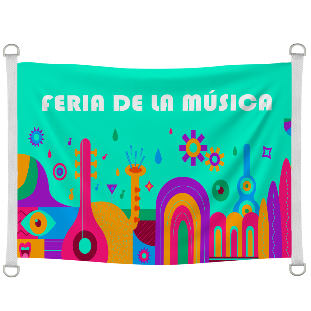 Bandera 100% poliéster punto liso con un 5% de licra para que soporte estiramiento y golpes de aire sin desgarrarse.
