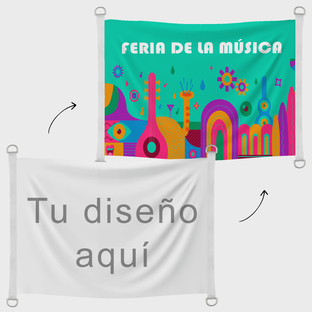 Para personalizar esta bandera utilizaremos sublimación. Es una técnica en la cual, a través del calor, se transfieren los colores del papel a la bandera. Nos permite aplicar abanicos de color muy ricos y variados. Los colores no se deterioran y se simplifica la realización de diseños complejos.