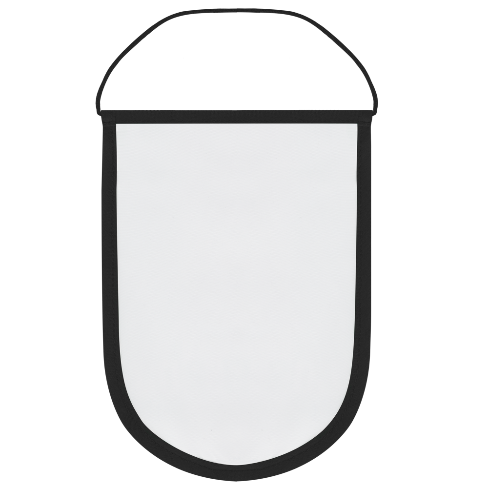 Banderín rectangular con final redondeado, anchos de 9cm, 14cm, 18cm, 23cm y 25cm con cuerda y fieltro en su interior para darle cierta rigidez y de acabado semi-mate.