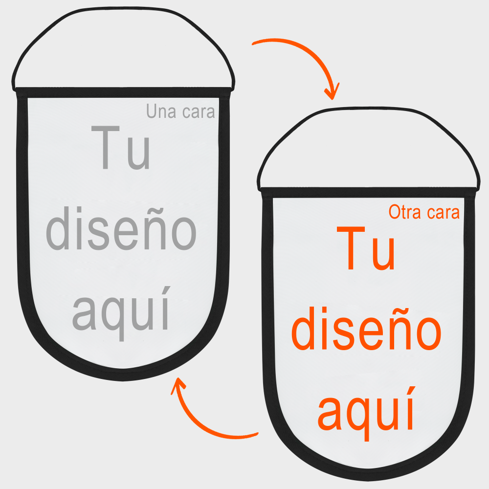 Este banderín es 100% personalizable en la totalidad del área marcada, en una o dos caras.