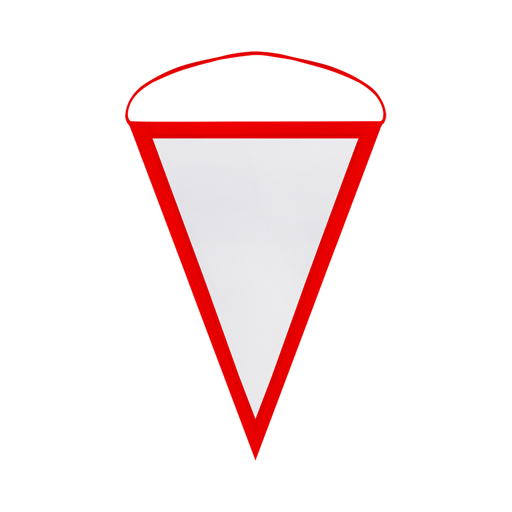 Banderín triangular, anchos de 9cm, 14cm, 18cm, 23cm y 25cm con cuerda y fieltro en su interior para darle cierta rigidez y de acabado semi-mate.