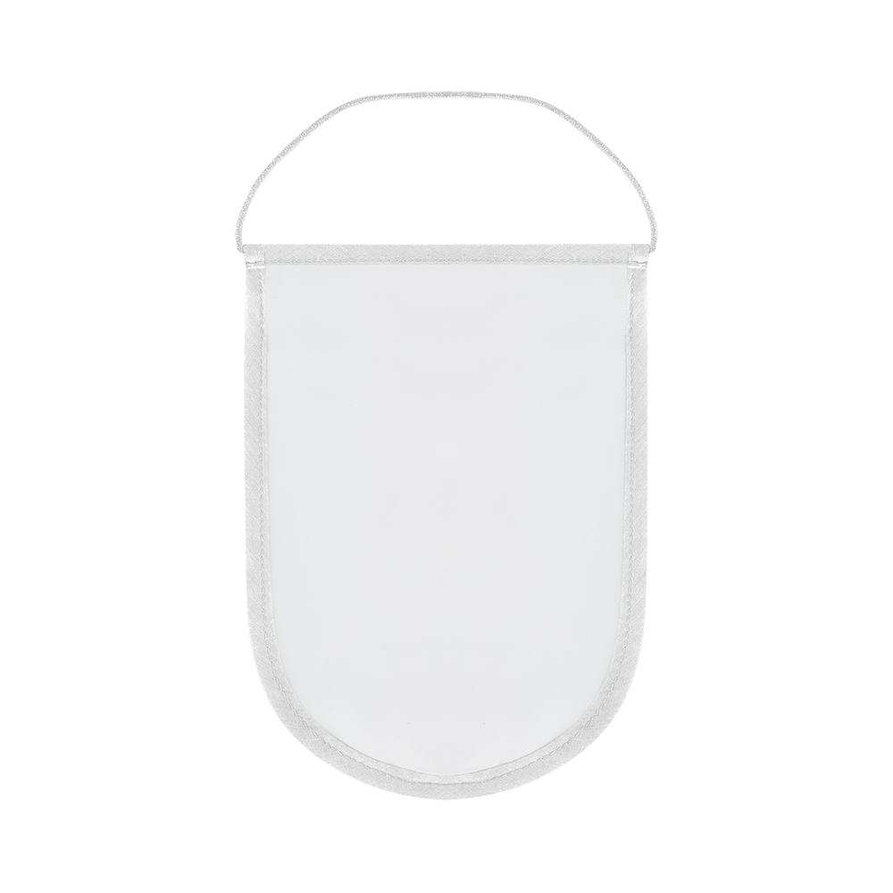 Banderín rectangular con final redondeado, anchos de 9cm, 14cm, 18cm, 23cm y 25cm con cuerda y fieltro en su interior para darle cierta rigidez y de acabado semi-mate.