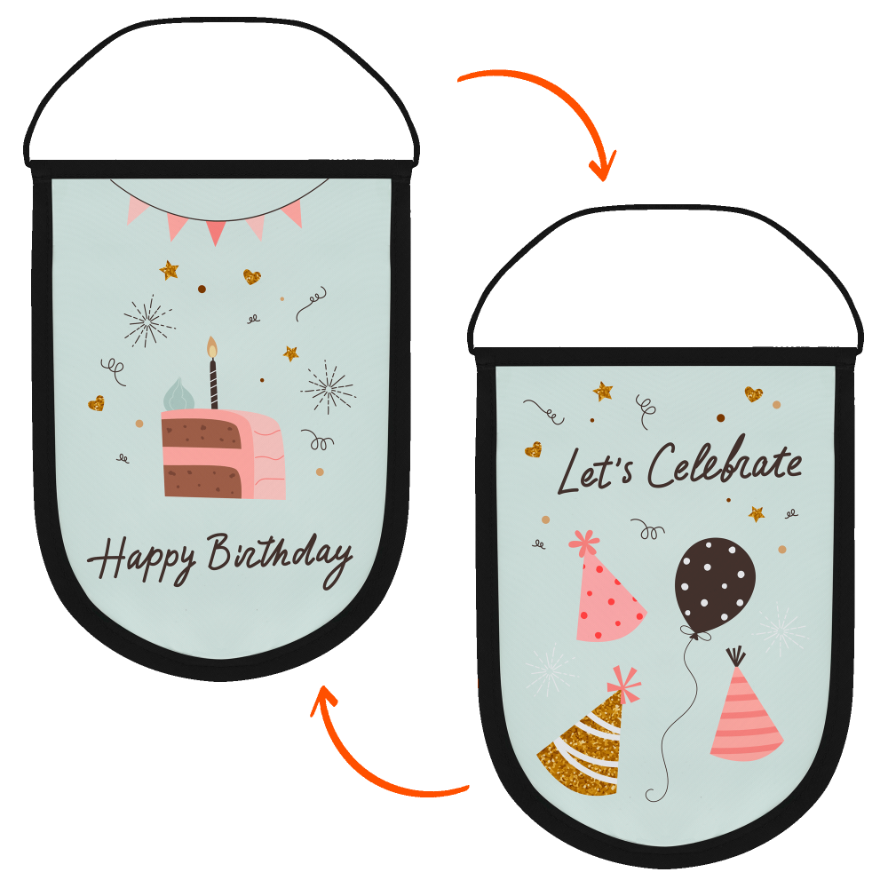 Este banderín es 100% personalizable en la totalidad del área marcada, en una o dos caras.