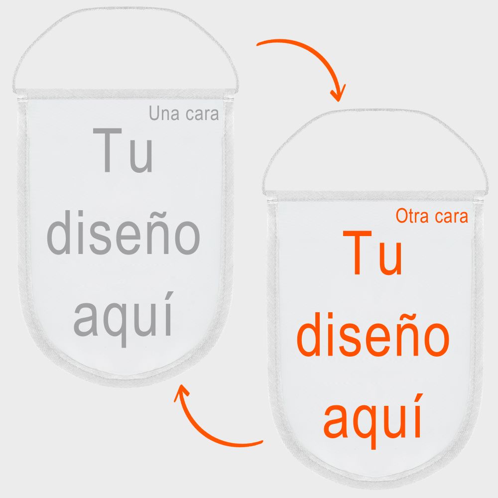 Este banderín es 100% personalizable en la totalidad del área marcada, en una o dos caras.