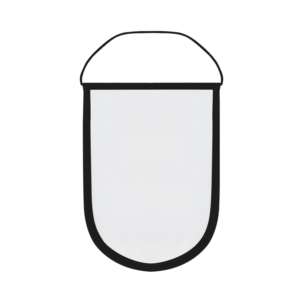 Banderín rectangular con final redondeado, anchos de 9cm, 14cm, 18cm, 23cm y 25cm con cuerda y fieltro en su interior para darle cierta rigidez y de acabado semi-mate.