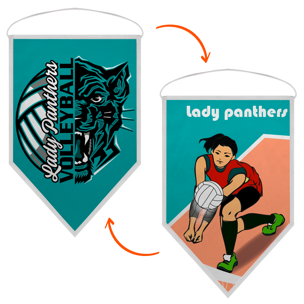 Este banderín es 100% personalizable en la totalidad del área marcada, en una o dos caras.