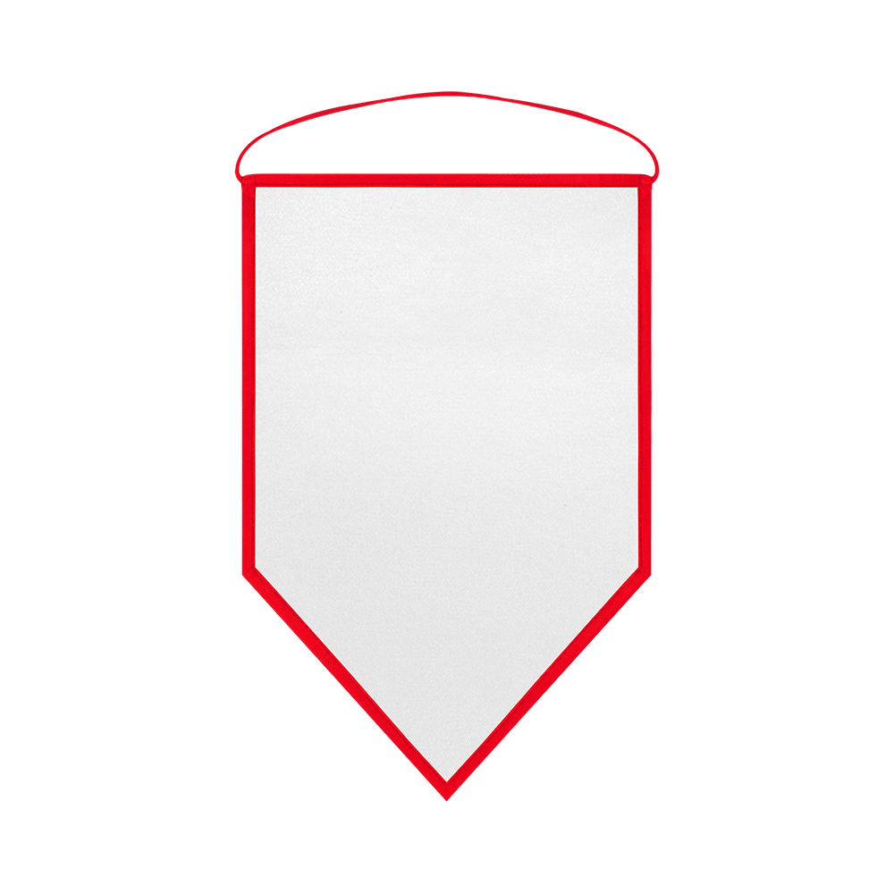 Banderín rectangular con final triangular, anchos de 9cm, 14cm, 18cm, 23cm y 25cm con cuerda y fieltro en su interior para darle cierta rigidez y de acabado semi-mate.