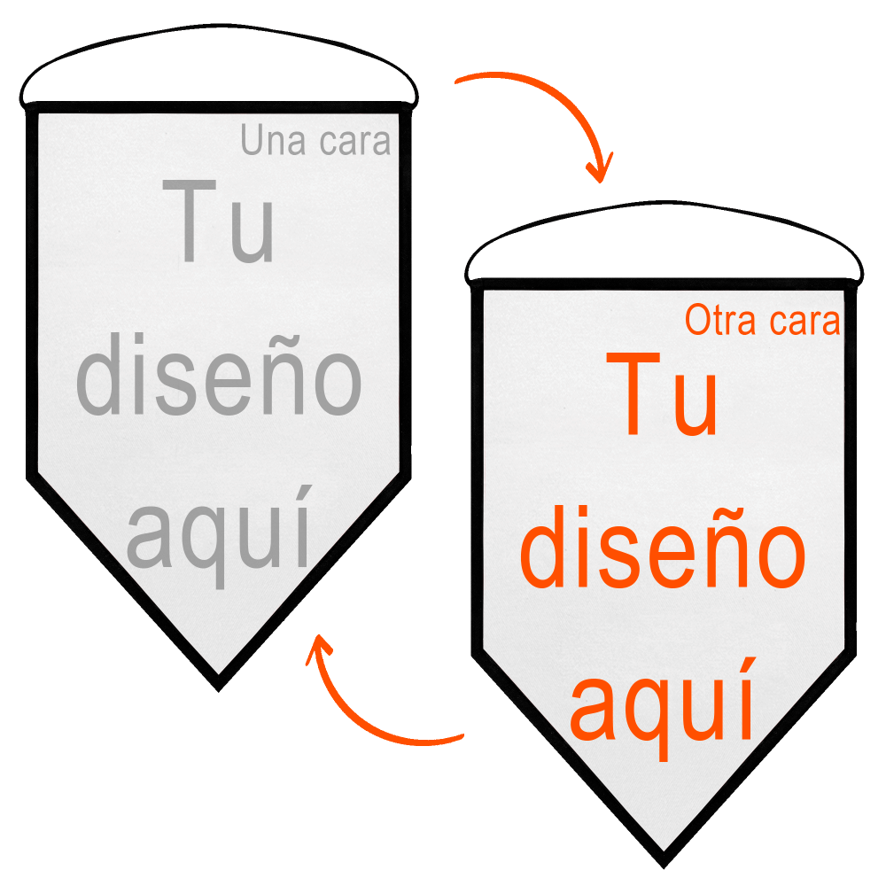 Este banderín es 100% personalizable en la totalidad del área marcada, en una o dos caras.