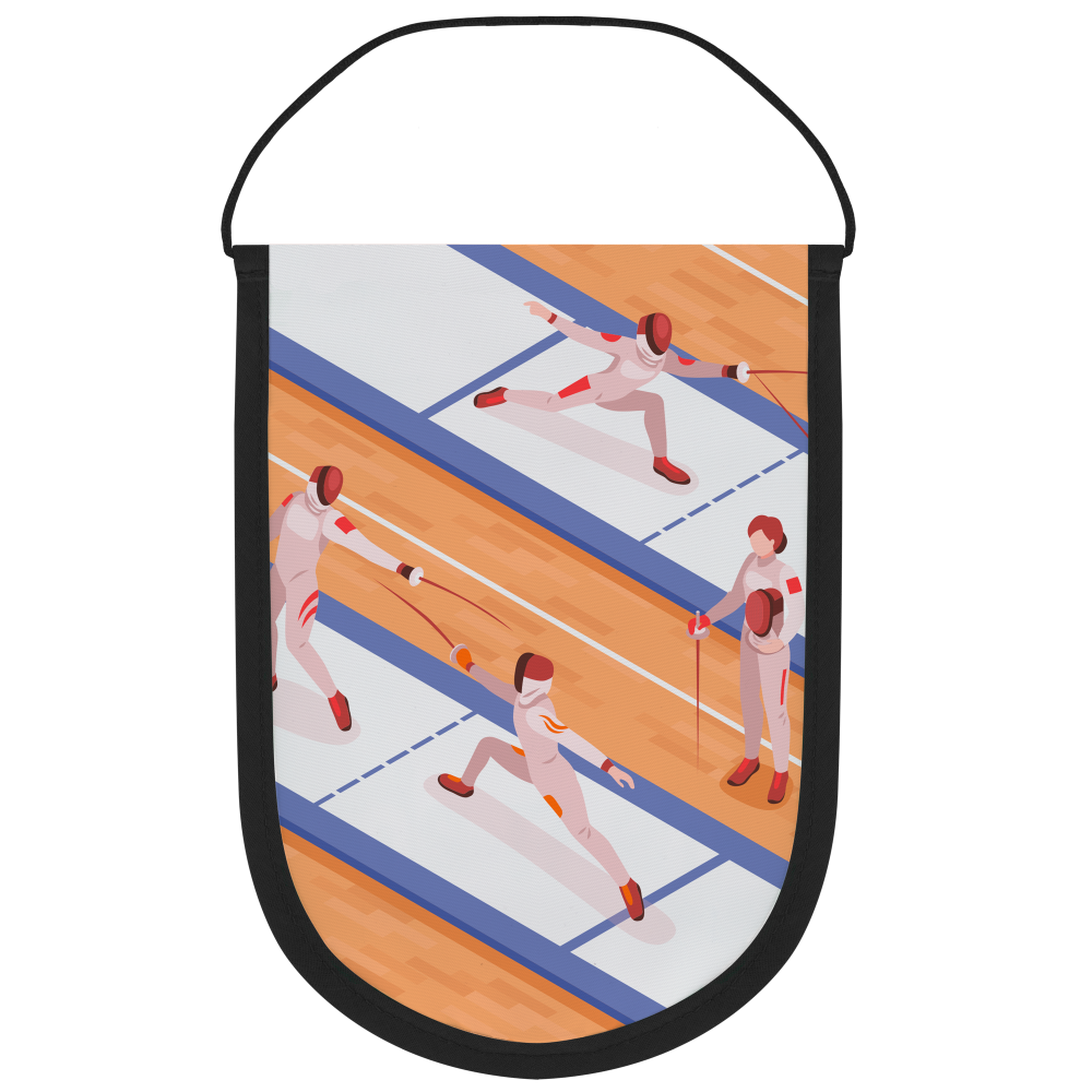Banderín rectangular con final redondeado, anchos de 9cm, 14cm, 18cm, 23cm y 25cm con cuerda y fieltro en su interior para darle cierta rigidez y de acabado semi-mate.