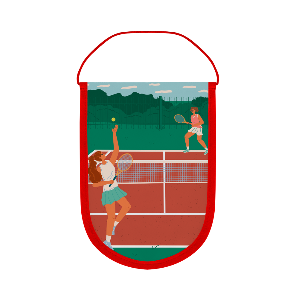 Banderín rectangular con final redondeado, anchos de 9cm, 14cm, 18cm, 23cm y 25cm con cuerda y fieltro en su interior para darle cierta rigidez y de acabado semi-mate.