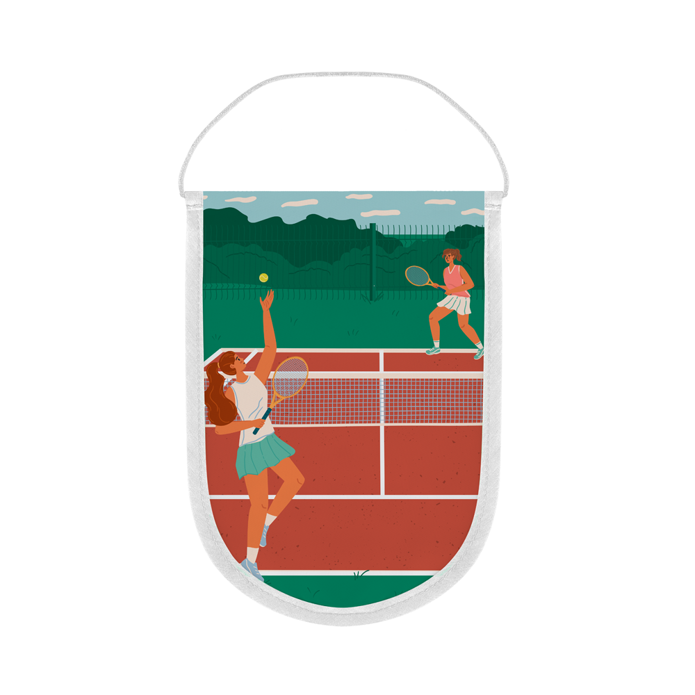 Banderín rectangular con final redondeado, anchos de 9cm, 14cm, 18cm, 23cm y 25cm con cuerda y fieltro en su interior para darle cierta rigidez y de acabado semi-mate.