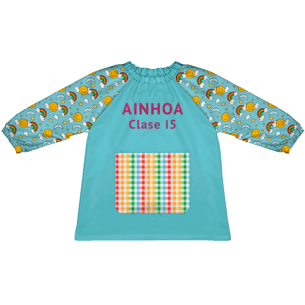 Bata escolar de manga larga con bolsillo delantero y goma en los puños y cuello