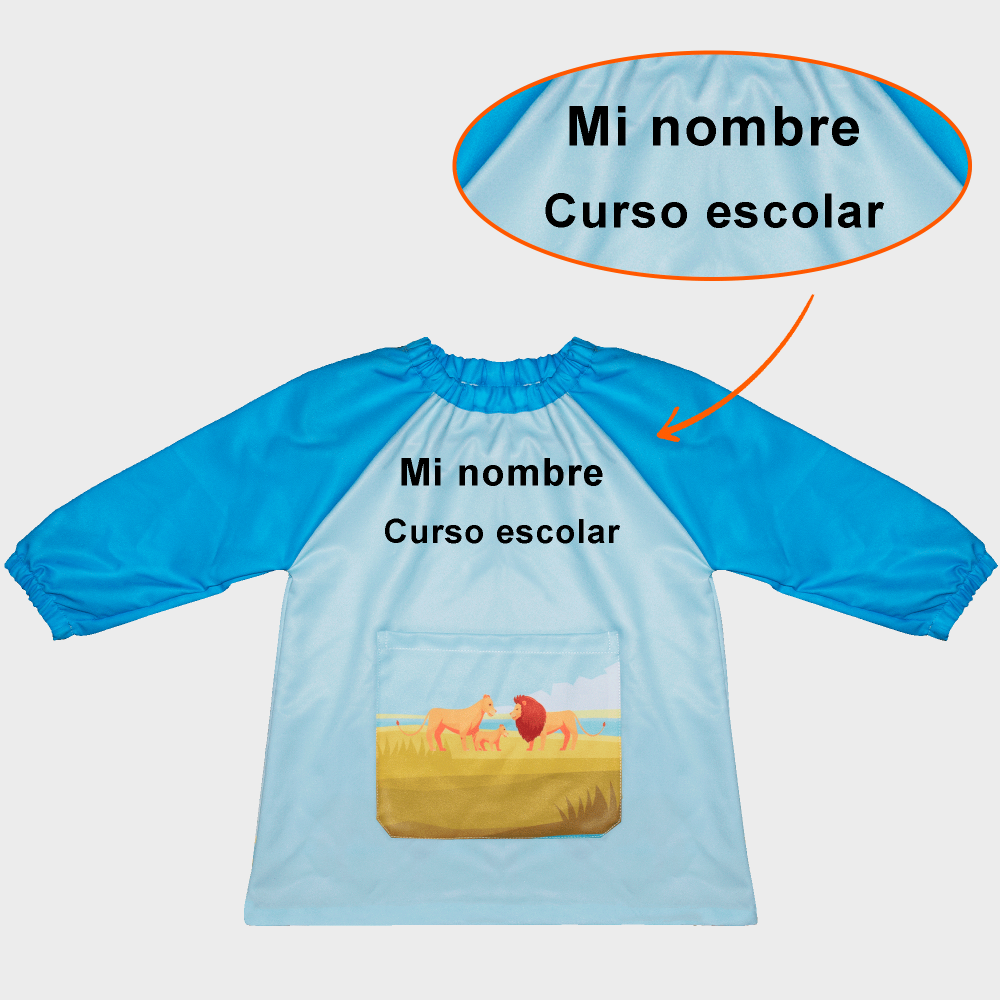 Bata escolar de manga larga con bolsillo delantero y goma en los puños y cuello