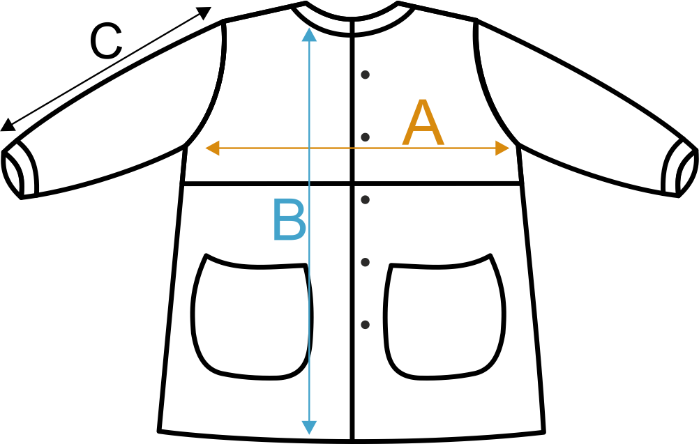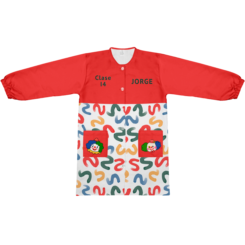Bata escolar con cierre con botones, dos bolsillos en la parte delantera y goma en los puños