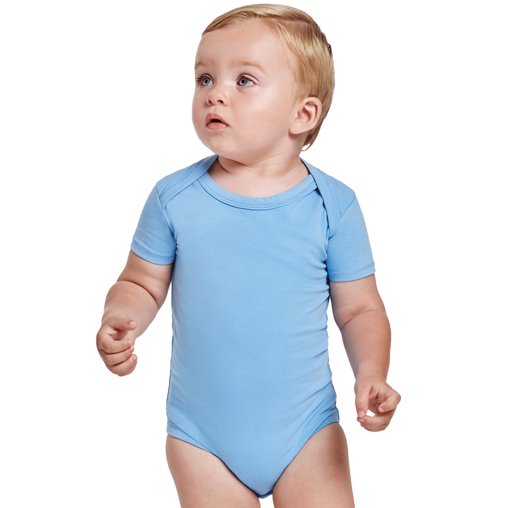 Body de manga corta para bebé, de cuello redondo con cierre con botones a presión en la entrepierna.