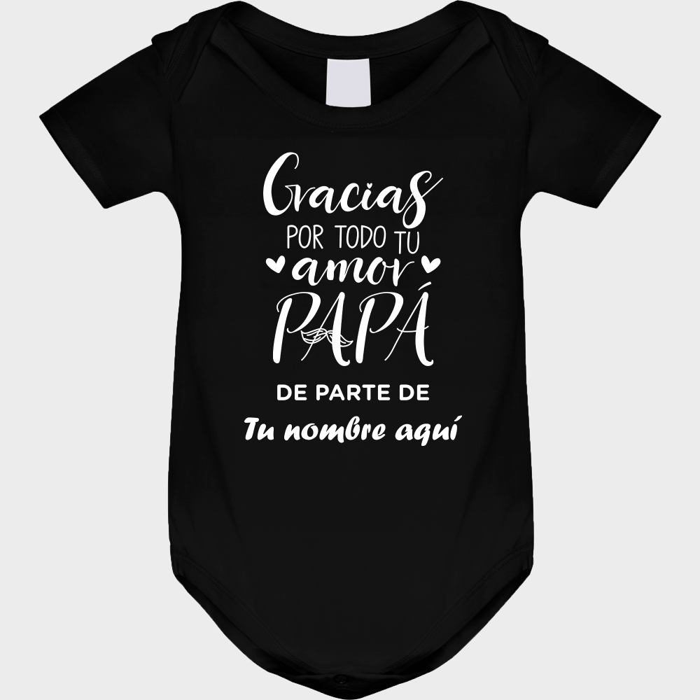 Body de bebé de manga corta y cuello redondo. Cierre con botones a presión en la entrepierna, hombro con abertura cruzada.