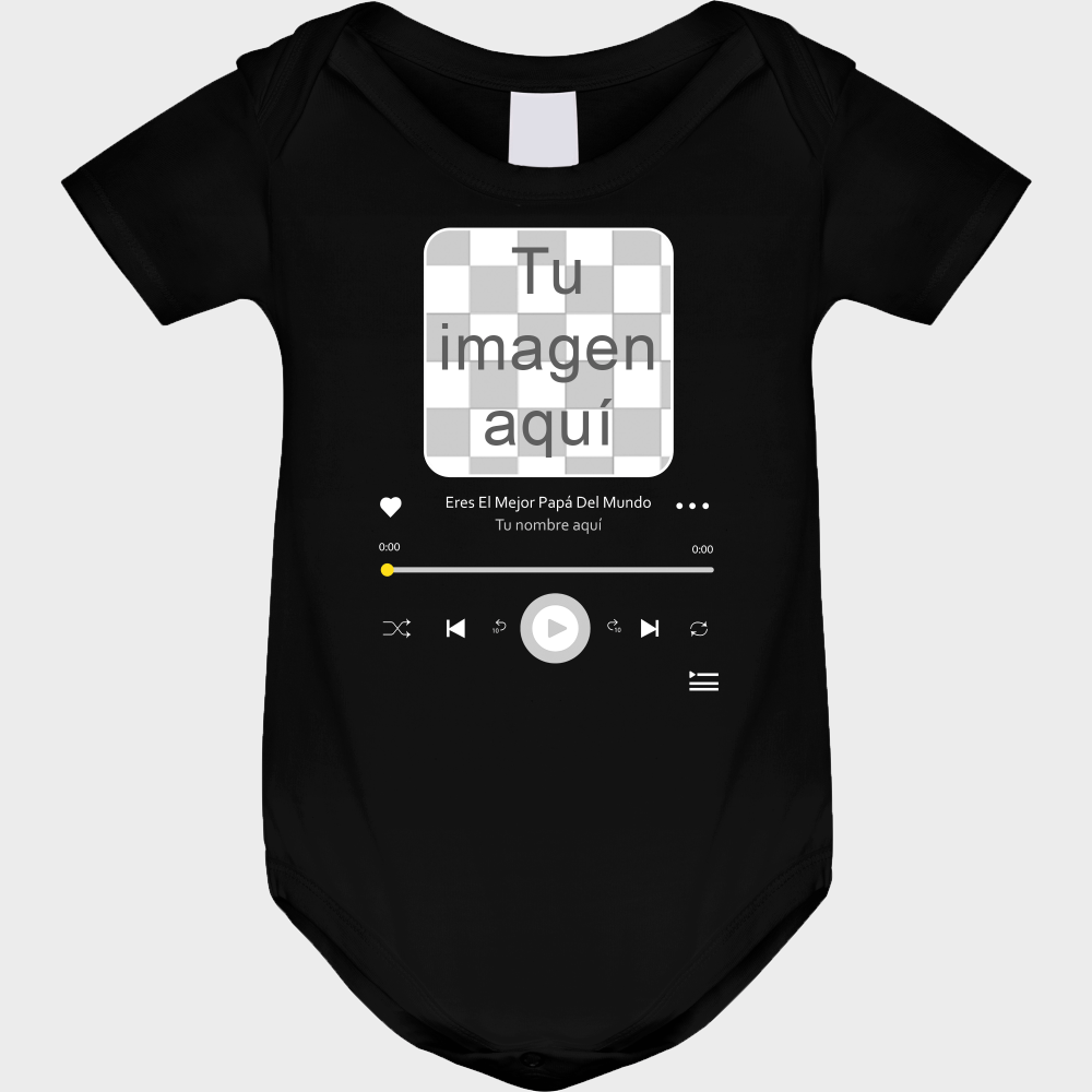 Body de bebé de manga corta y cuello redondo. Cierre con botones a presión en la entrepierna, hombro con abertura cruzada.