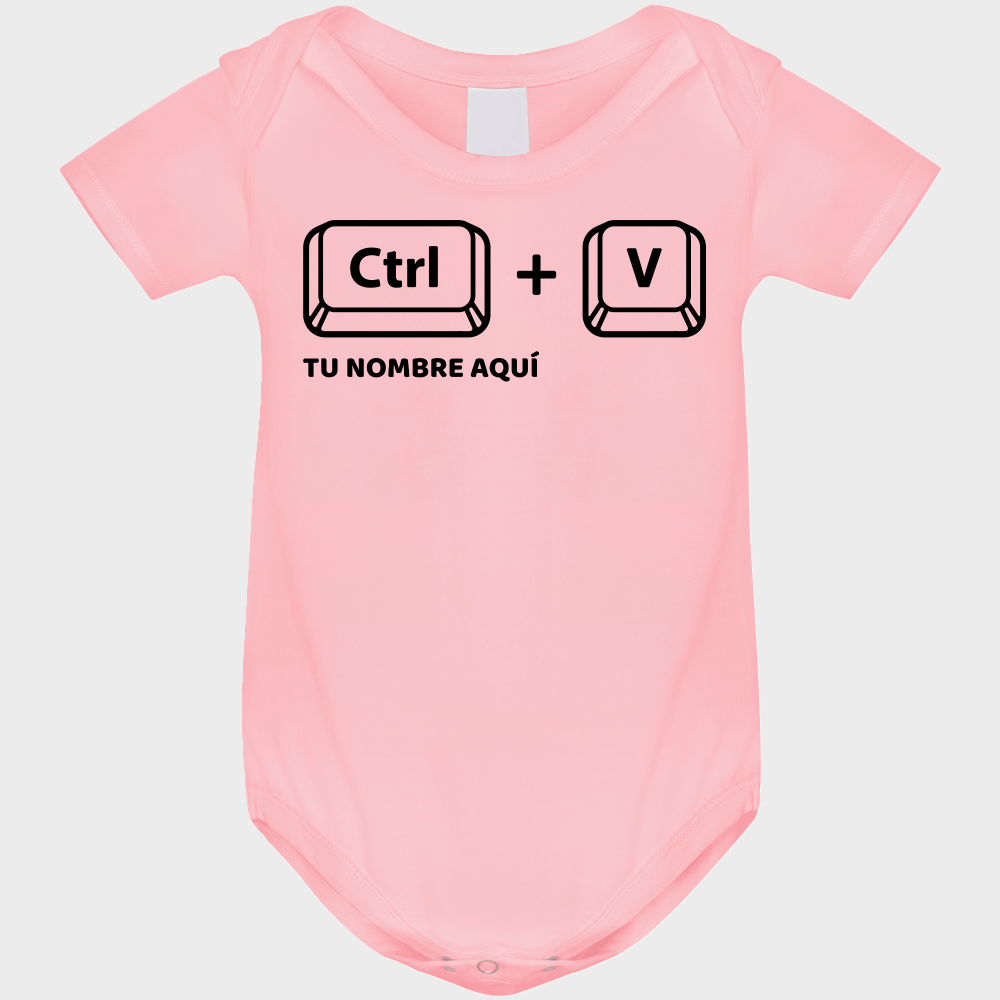 Body de bebé de manga corta y cuello redondo. Cierre con botones a presión en la entrepierna, hombro con abertura cruzada.