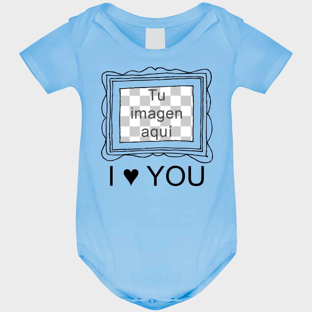 Body de bebé de manga corta y cuello redondo. Cierre con botones a presión en la entrepierna, hombro con abertura cruzada.
