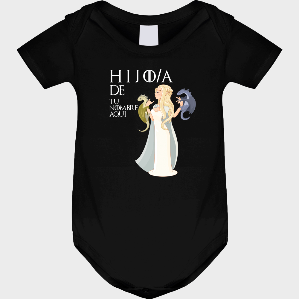 Body de bebé de manga corta y cuello redondo. Cierre con botones a presión en la entrepierna, hombro con abertura cruzada.