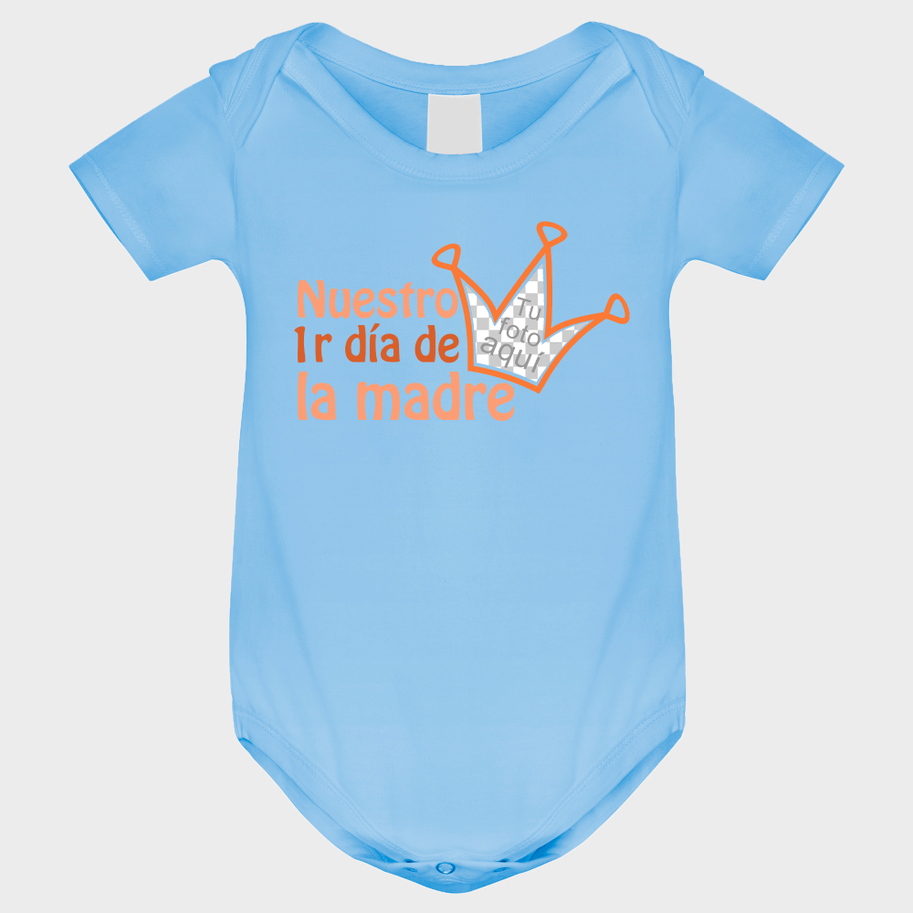 Body de bebé de manga corta y cuello redondo. Cierre con botones a presión en la entrepierna, hombro con abertura cruzada.