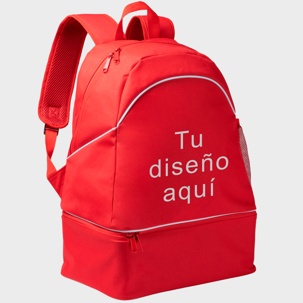 Mochila con cajón zapatillero rígido. Compartimento principal con cremallera y doble tirador y bolsillo interior