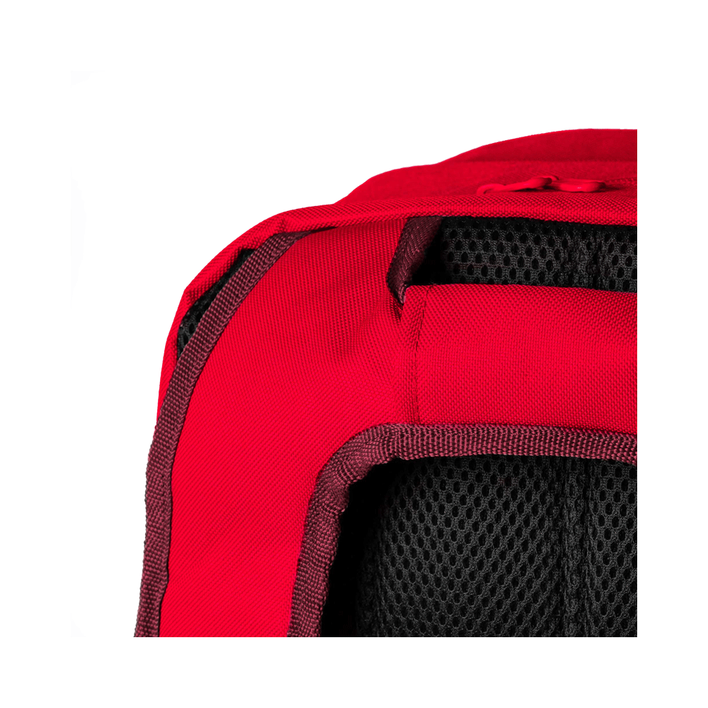 Con doble asa para hombros y asa de mano, respaldo acolchado, bolsillo zapatillero y bolsillo frontal exterior.
