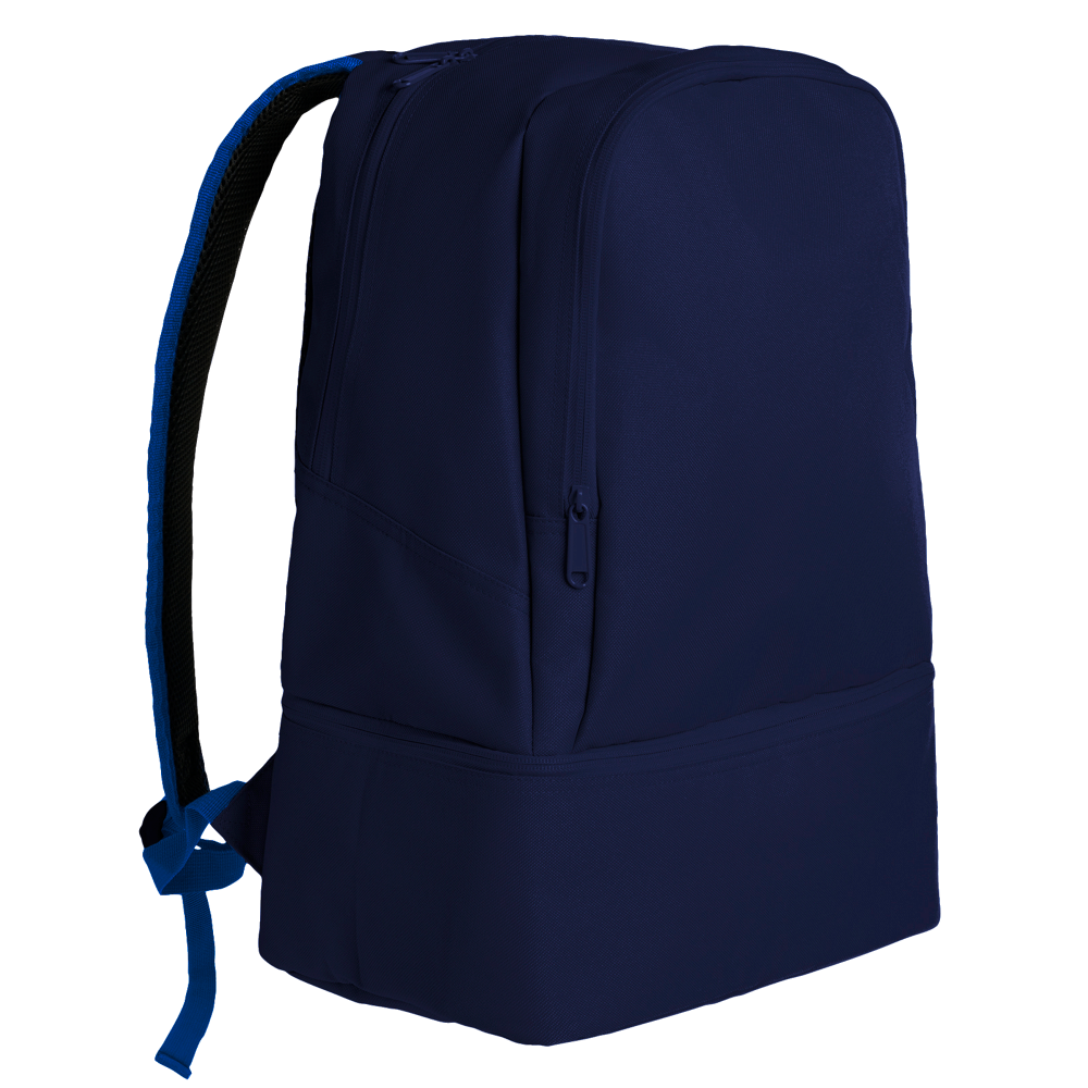 Con doble asa  para hombros y asa de mano, respaldo acolchado, bolsillo zapatillero y bolsillo frontal exterior.