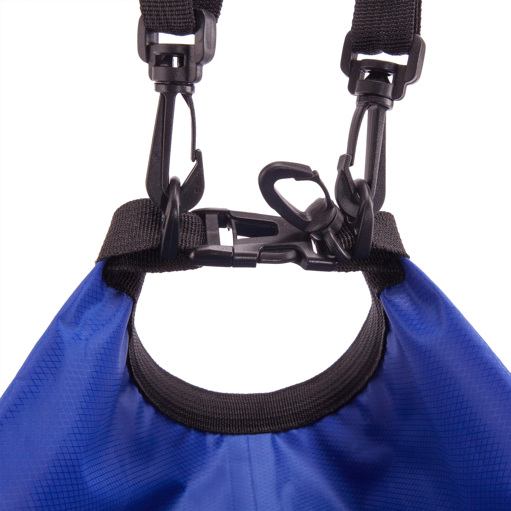 Mosquetón y cinta bandolera ajustable para transporte.