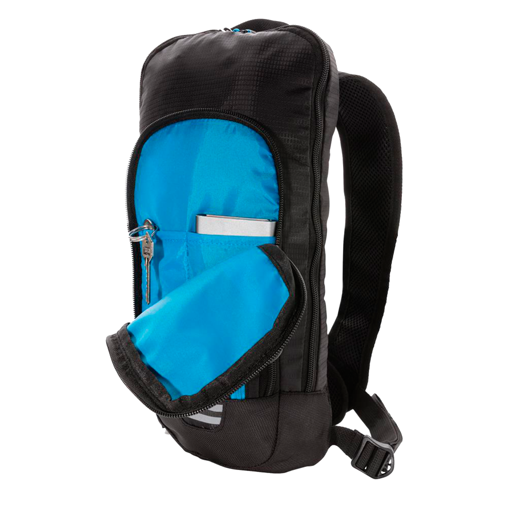 Bolsillo central con cremallera y un orificio para facilitar acceso tubo hidratación.
