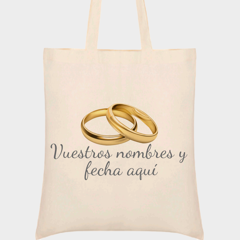 Esta bolsa de tela la puedes personalizar con los nombres y la fecha de la boda. Indícanos en los comentarios los nombres y/o fecha que quieras que imprimamos. Si no nos indicas nada, imprimiremos solo la ilustración.