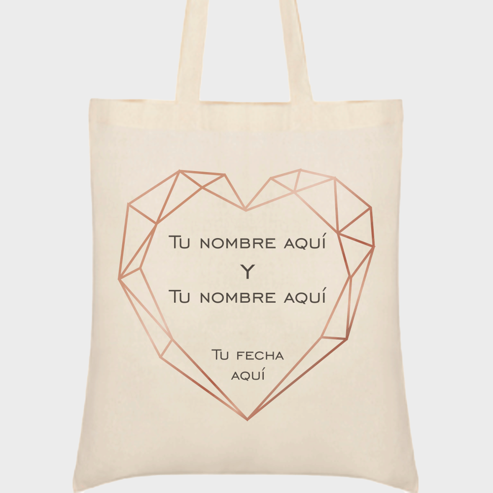 Esta bolsa de tela la puedes personalizar con los nombres y la fecha de la boda. Indícanos en los comentarios los nombres y/o fecha que quieras que imprimamos. Si no nos indicas nada, imprimiremos solo la ilustración.