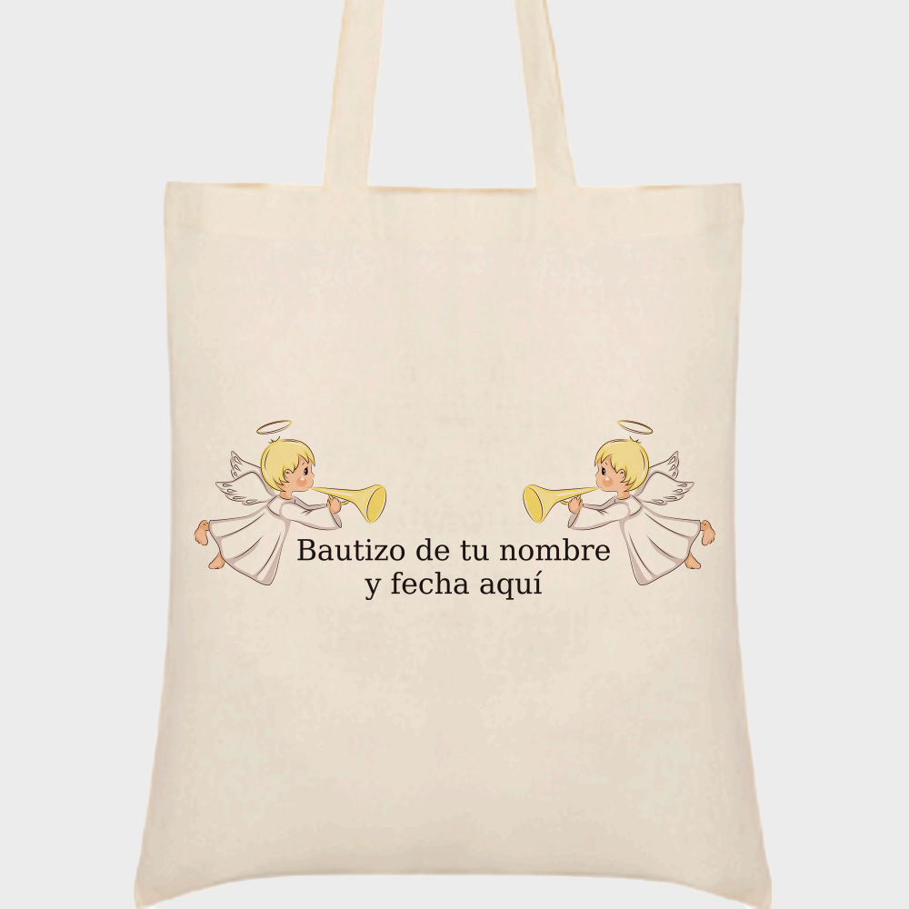 Esta bolsa de tela la puedes personalizar con el nombre y la fecha del bautizo. Indícanos en los comentarios el nombre y/o fecha que quieras que imprimamos. Si no nos indicas nada, imprimiremos solo la ilustración.