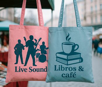 Para las bolsas de tela usamos la técnica de serigrafía, ya sea digital o tradicional, depende de la cantidad de unidades a imprimir.