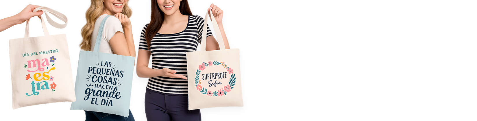 Las bolsas de tela se convierten en un complemento a tu look diario. Elige el color que más te guste y crea un diseño personalizado.