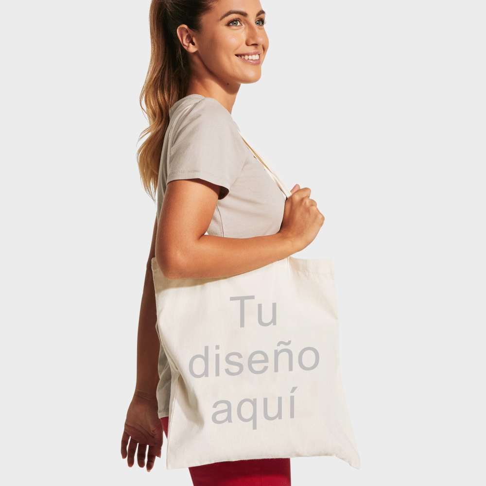 Bolsa de tela ideal para para tu día a día de color natural con una amplia superficie de estampación.