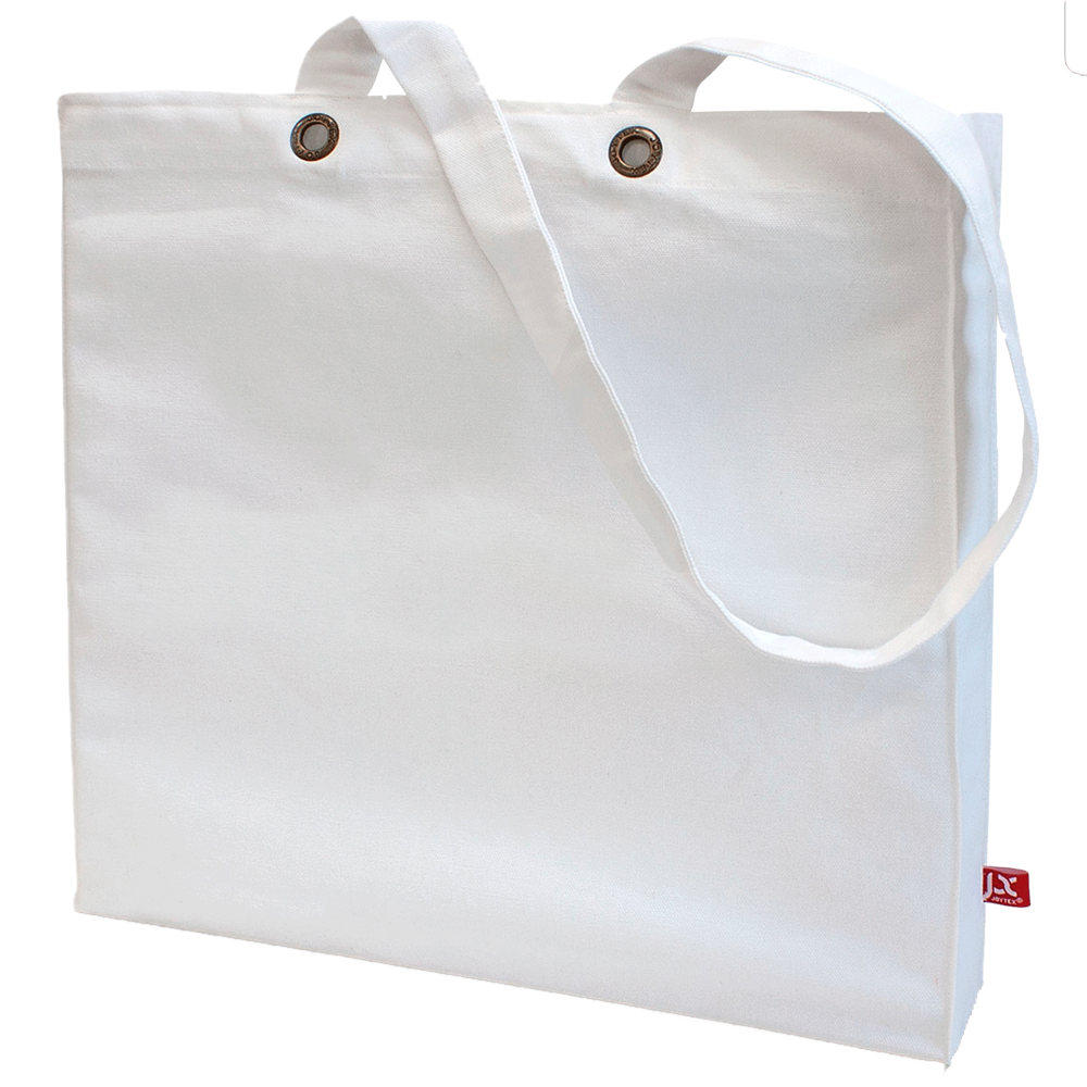 Las bolsas blancas o de color natural, al ser ya blancas, no llevan base, van directamente pintadas con el color del diseño, entonces la tinta cala directa en el tejido y su porosidad actúa, en cambio en las de color, antes de pintar el diseño, pintamos una base blanca, esa tinta ya tapa algunos poros y realza colores, es por lo que cuando pintamos sobre prendas de color (no blancas), el tejido absorbe menos. Por ello podrá contemplar también que el acabado en una bolsa de color o en una blanca es diferente, la de color tiene más peso, y la blanca queda totalmente integrada y mate, como si formará parte del tejido.