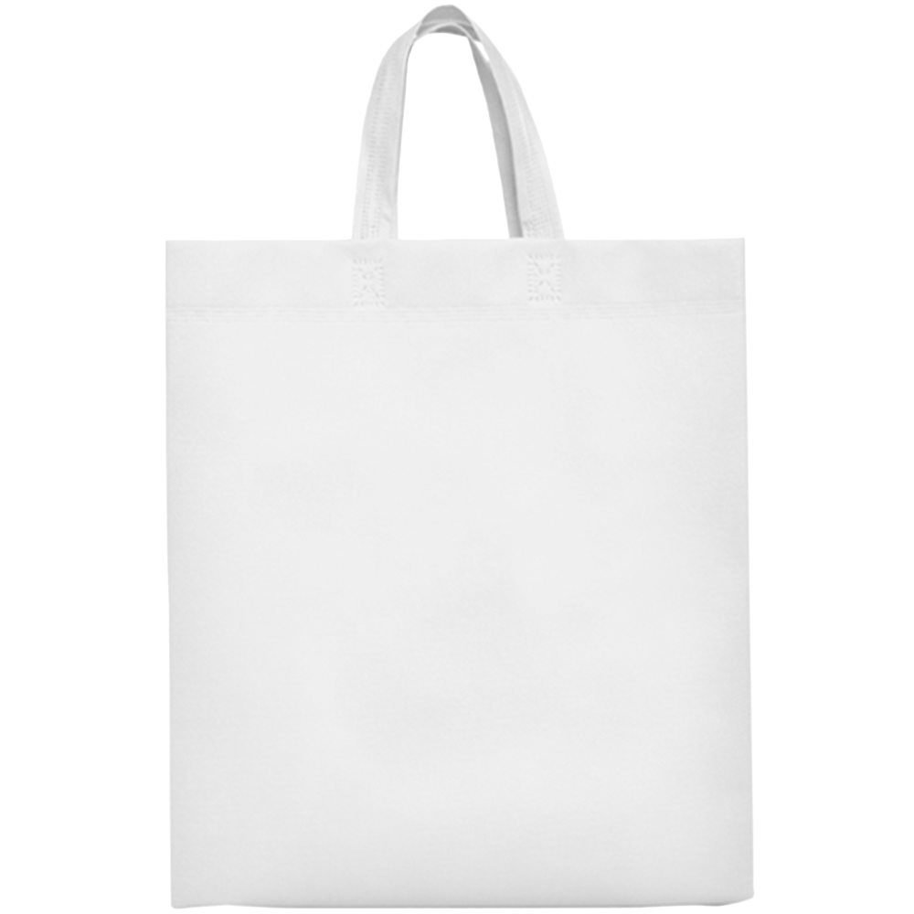 Bolsa termosellada con fuelle en los laterales y en la base, fabricada en tejido non-woven (no tejido), con asa corta de cinta en el mismo color.