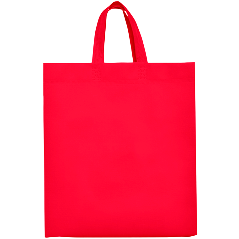 Bolsa termosellada con fuelle en los laterales y en la base, fabricada en tejido non-woven (no tejido), con asa corta de cinta en el mismo color.